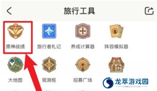 3、最后,在旅行工具列表中点击“原神战绩”,即可查看原神抽卡记录。