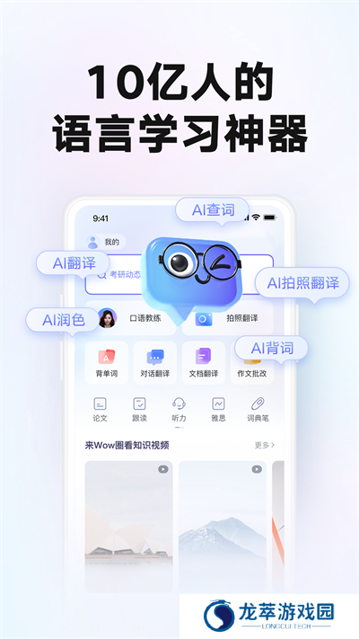 网易有道词典安装包是网易旗下的一款外语翻译软件,目前软件支持中文、英语、法语等109种语言之间的相互翻译,依托AI翻译技术实现外语单词的精确识别翻译,是10亿人最佳的外语学习神器。最新版的有道词典新增同声传译版块,对方说出的话自动在手机中转译成中文,不管是国际会议还是商务交流,零外语基础也能实现与老外们交流0障碍,语言不通不再是沟通的困难。