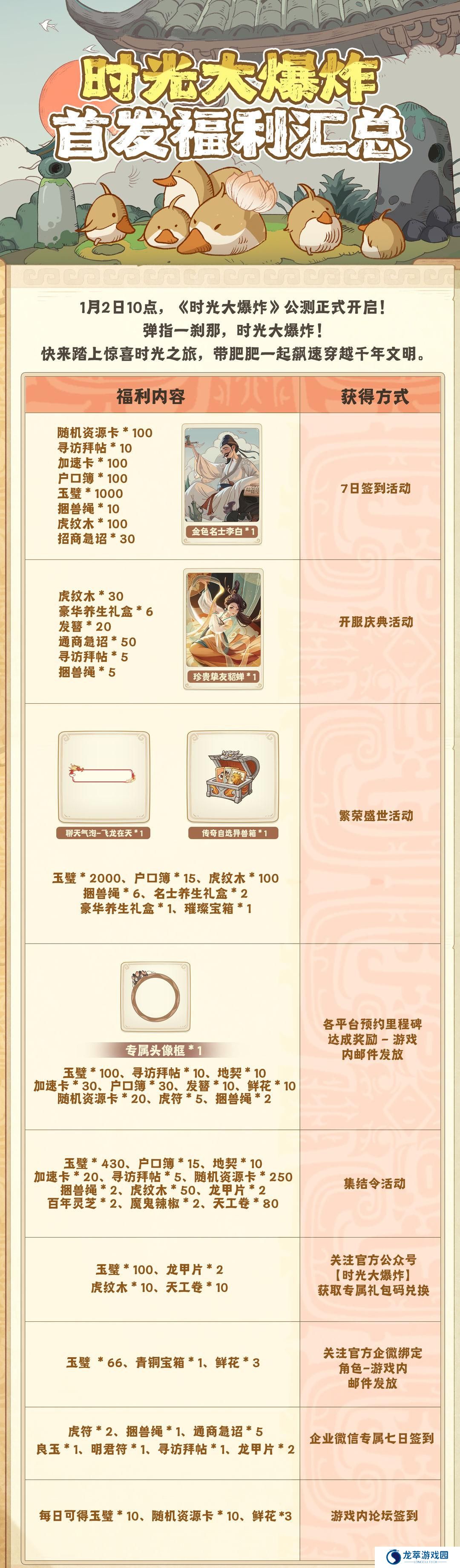 《时光大爆炸》公测上线还带来了一**福利给玩家!详细内容见下图。
