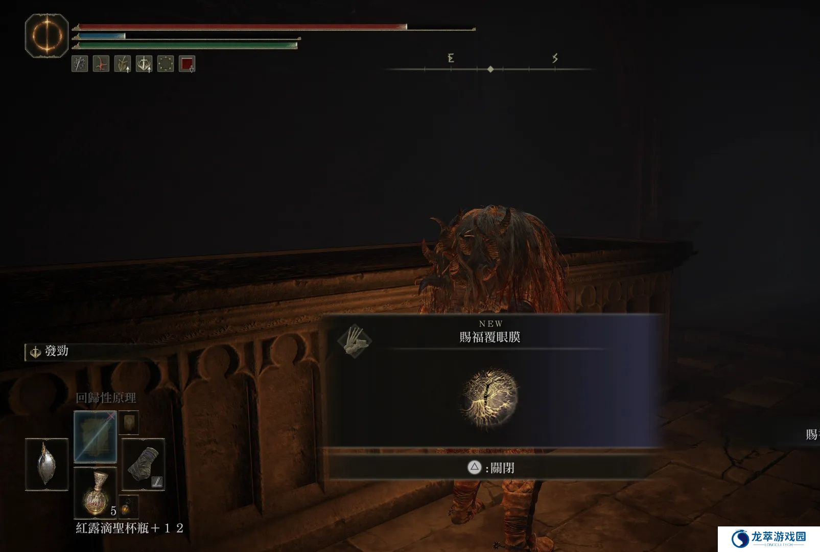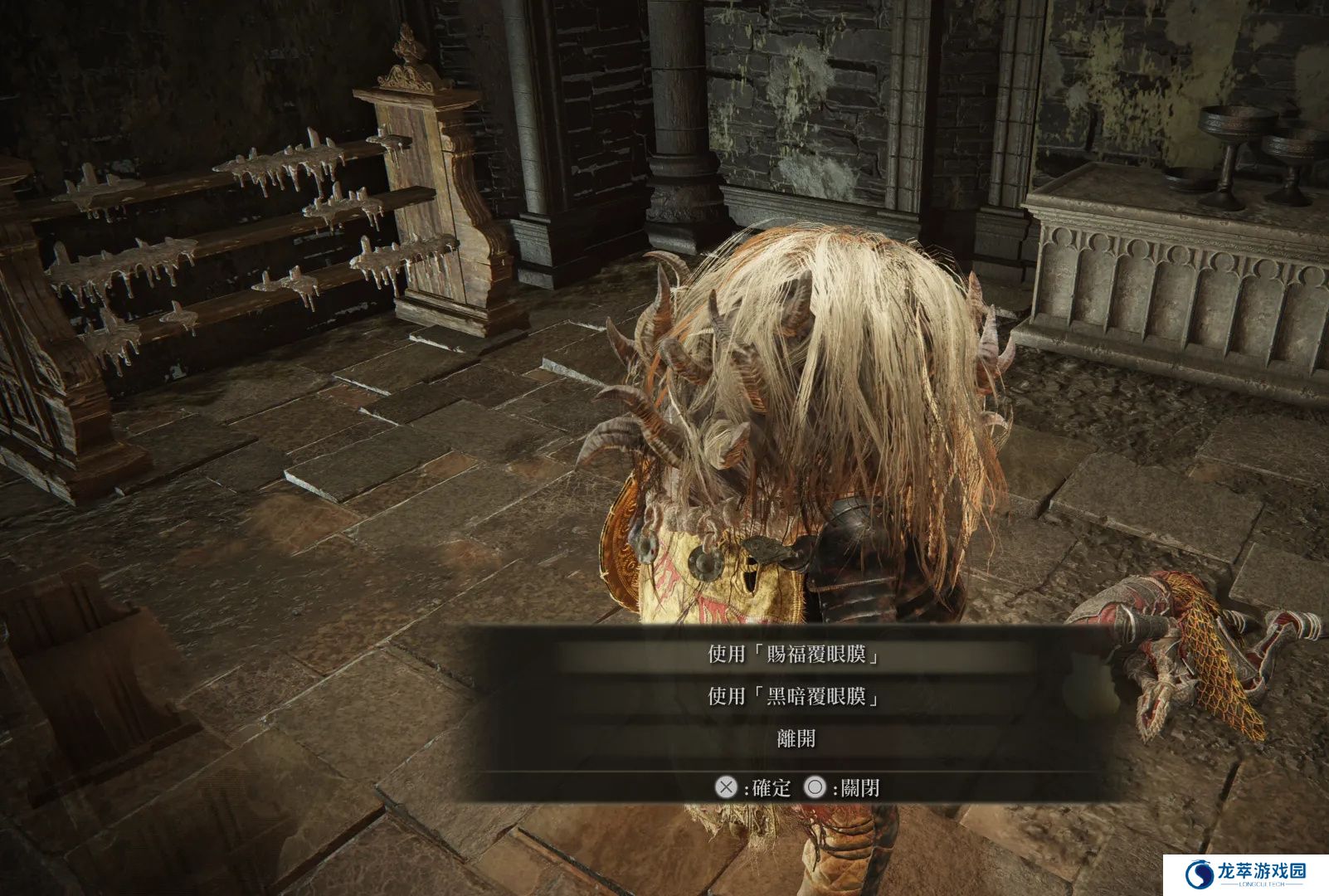 开门发现昆兰倒在地上,这里需要持有两种道具,分别是「赐福覆眼膜」和「黑暗覆眼膜」,用于 NPC 身上应该不会被消耗,所以只要各拿到一个即可。