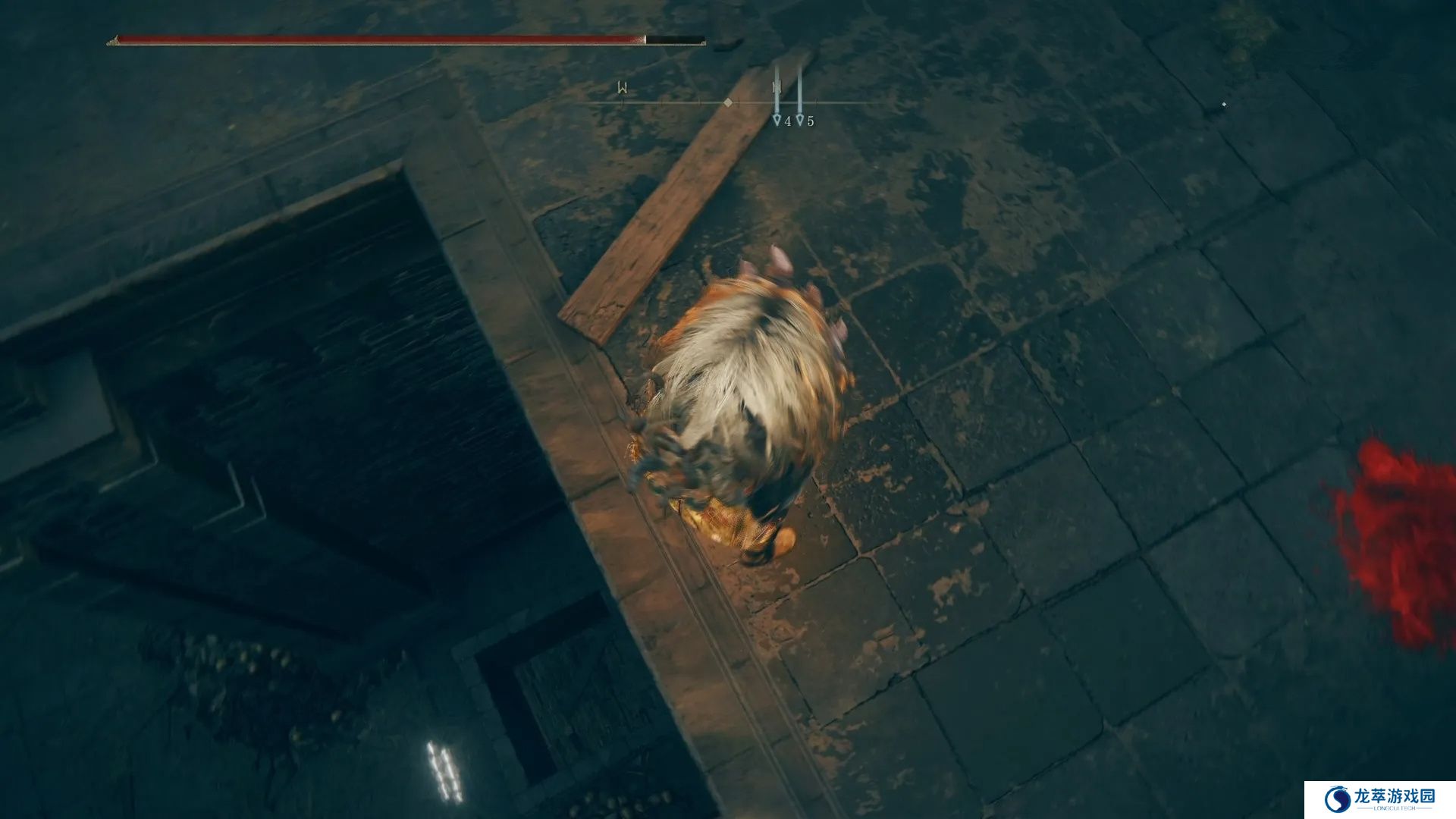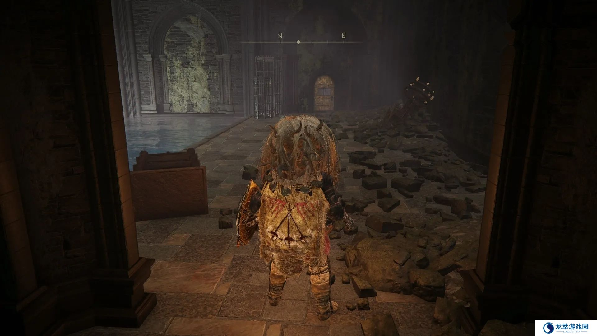 从教区入口处,跳到下图右前方的平台上,绕一圈来到前方的屋顶,,击败火焰骑士后,跳到旁边的斜坡跑上去,从屋顶缺口跳下去进入教堂就能找到祈祷厅的门。