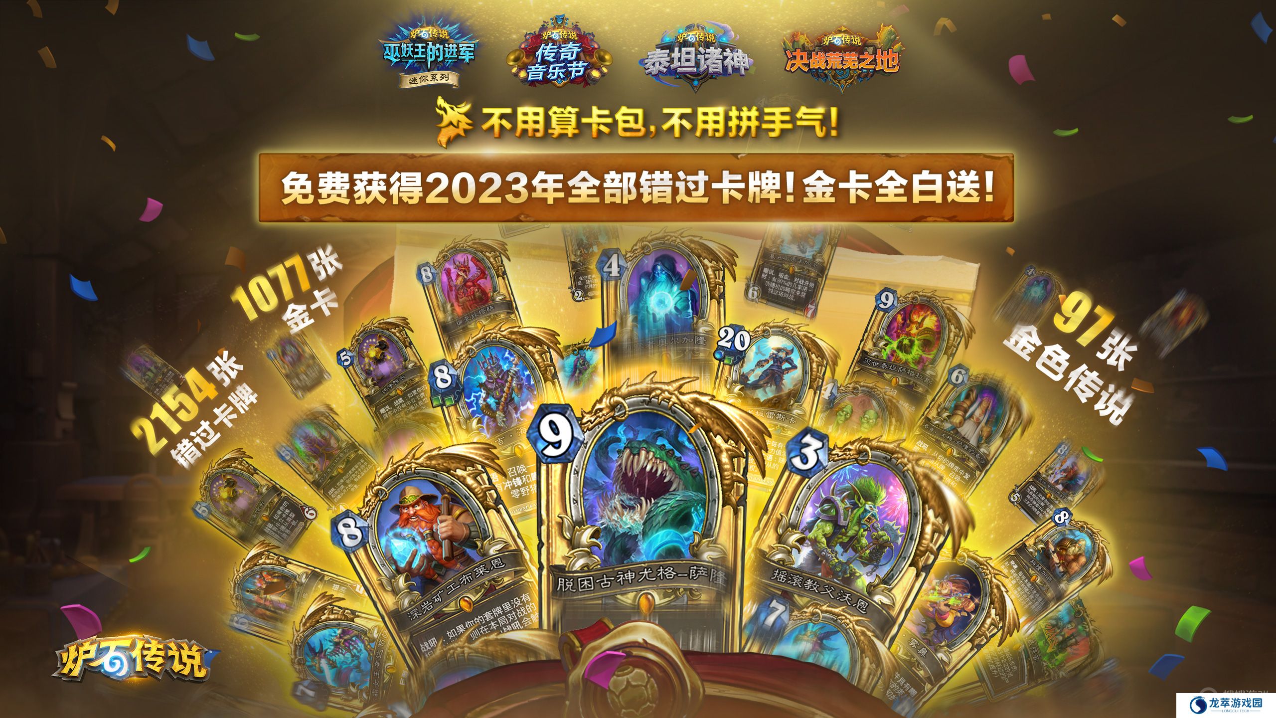 《炉石传说》国服9月25日回归送2023年全部错过卡牌一览,而且包括金卡!只要在9月25日登录《炉石传说》,所有国服玩家(包括新注册玩家)即可免费获赠独狼年标准模式错过的所有普通和金色卡牌,共计2154张卡牌,包括全部97张金色传说!