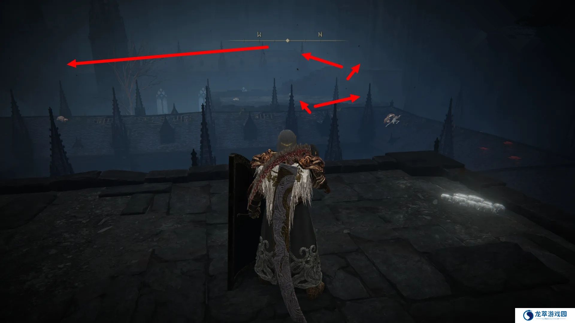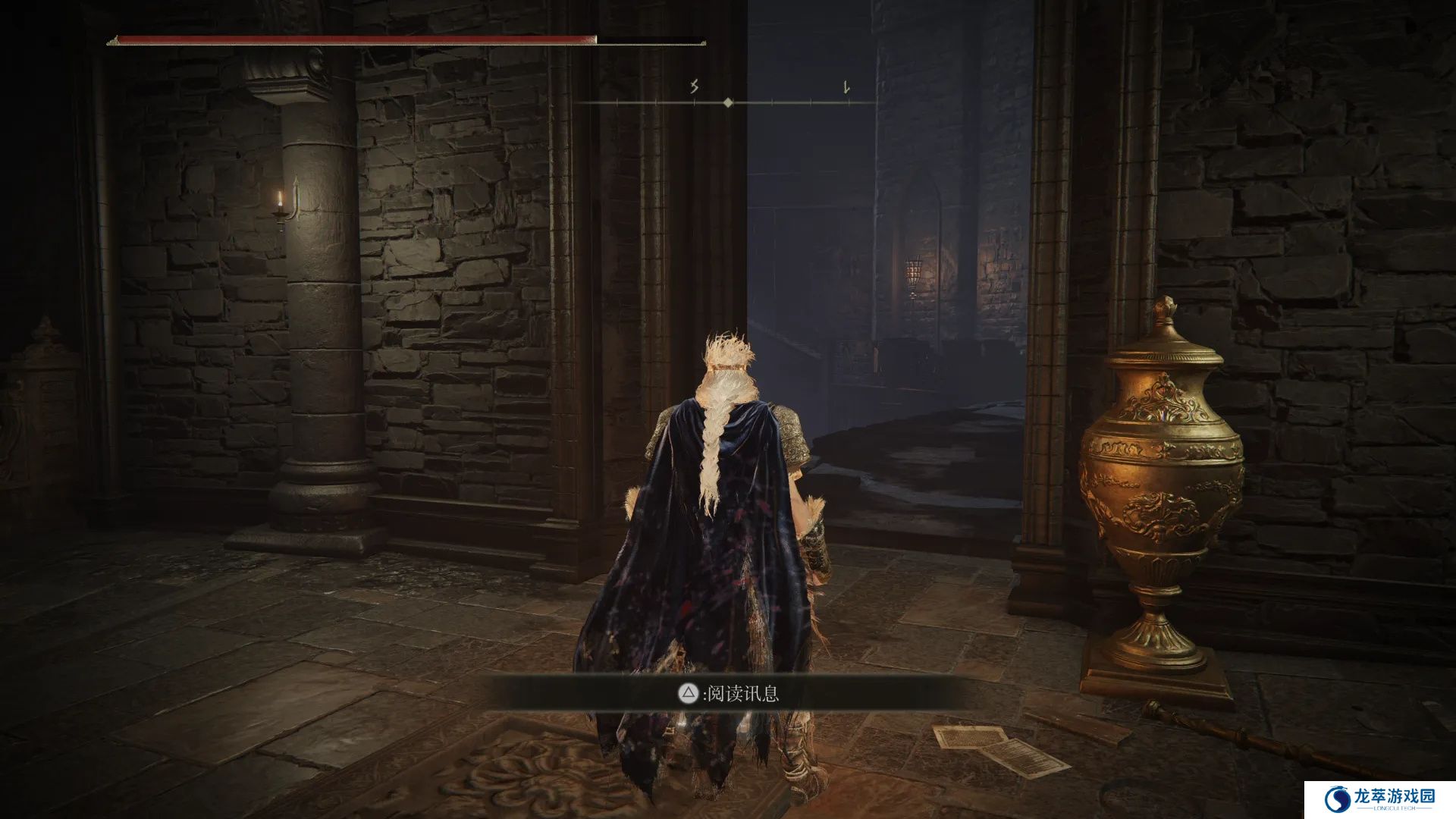 跳下去之后沿路从教堂离开(不要坐升降梯来到保藏库内区),贴着城墙走楼梯,最后爬梯子可以找到能互动的转盘,把下方区域的水排掉。