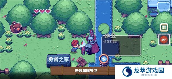6. 第六关:使用放大镜放大勇者,再用石头将勇者从地面上拔出剑。打开背包,使用石头震动守护神的下巴使其咬出火花,将拔出的剑放到其牙齿上,磨平剑后变成螺丝刀。用螺丝刀拧开左上角血条上的螺丝,生命之剑会掉落,把剑交给勇者即可。