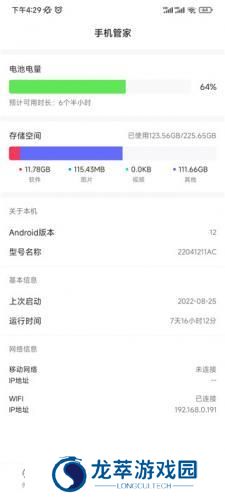 4、在管家页面中,你还可以实时看到你手机的电池电量以及存储空间。
