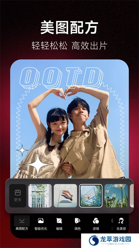 1、简单便捷无需切换,满足各种修图需求,美图配方汇聚流行图片视频玩法。
