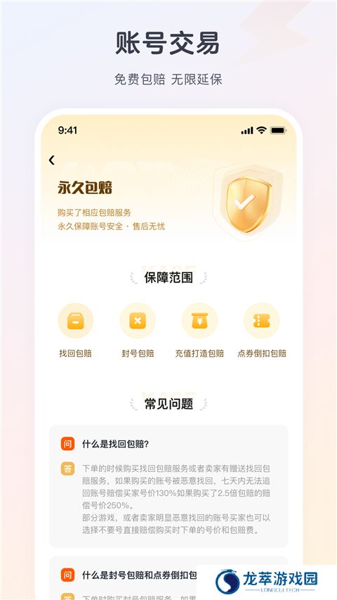 3、专业团队为玩家用户提供买卖担保,使双方交易更安全、更放心,找回后包赔偿。