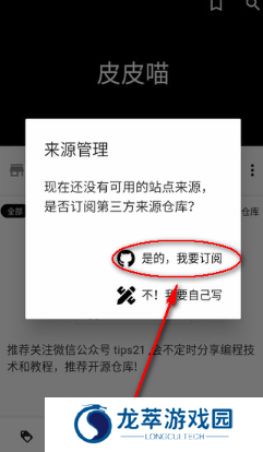 1、打开皮皮喵,点击“发现”,提示订阅第三方来源仓库,点击“是的,我要订阅”。