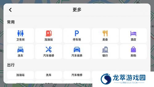 7、我们还可以通过常用功能查看当前周边和目的地的加油站、停车场、美食、酒店、洗车、维修、银行和购物等场景。