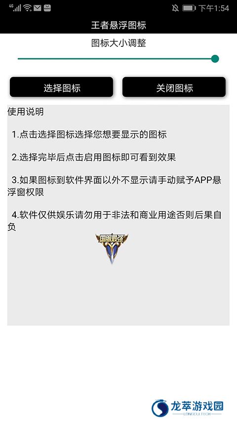 王者荣耀悬浮国标内置图标自定义功能,除了省标、国标、恋人等标志之外,还支持从手机本地导入图片,按照自己的需求调节悬浮图标的位置、大小、样式等参数,确保图标不会遮挡游戏的画面。