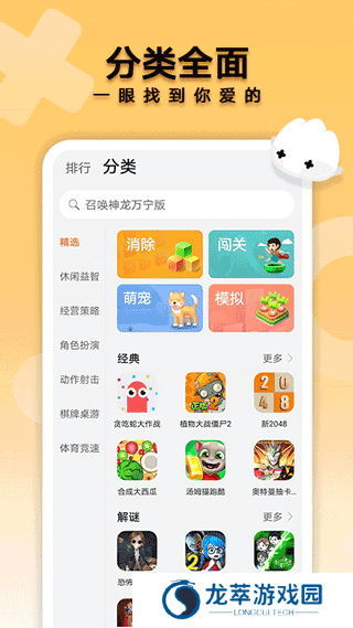 3、游戏应有尽有,简约清晰的界面分类很全面,够找到你心仪感兴趣的游戏。