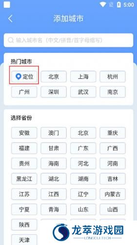 3、在这里可以选择在直接定位所在城市,也可手动添加自己感兴趣的城市。