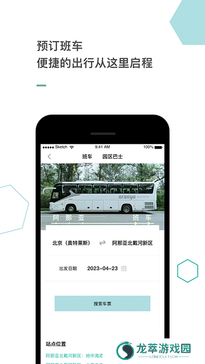 1、搜索北京往返阿那亚的班车,还有园区内巴士线路图,探寻园区的角角落落。