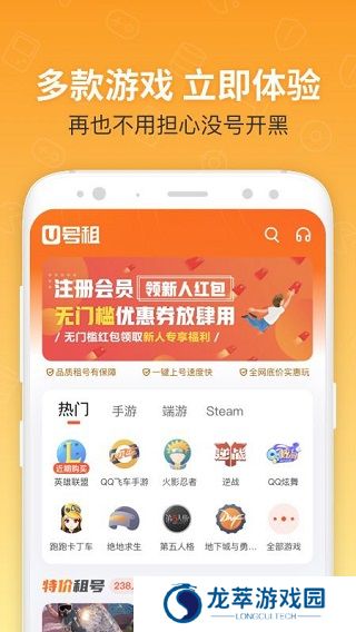 u号租是一款游戏账号租赁软件,精品端游、手游账号全覆盖,LOL全皮肤、CF全装备、绝地求生高段位等账号一应俱全,且经过u号租鉴定人员登录查看,账号信息绝对保真,玩家们可以放心租赁。内置自研账号登录器,当玩家租到游戏账号之后,时通过u号租就能直接打开游戏登录界面,无需玩家自己收容输入账号密码,从根源上解决了租赁账号绑定认证信息的泄露、账号被盗的情况。