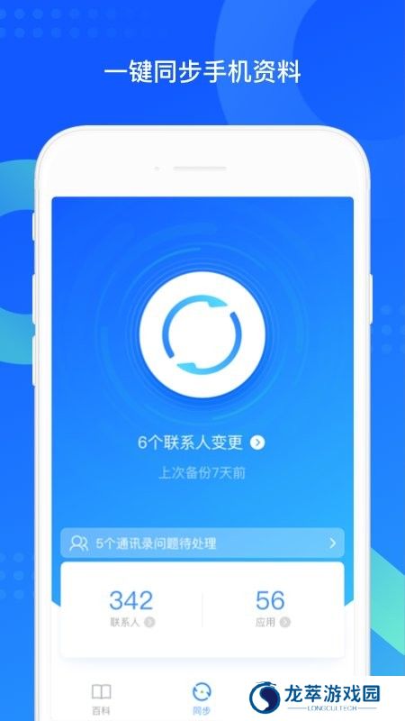 1、备份管理,手机通讯录一键备份至网络,随时同步回手机。