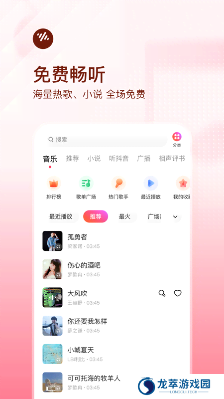 3、抖音推出的免费音乐播放器产品,内容超全,海量热歌、小说、相声评书全都有。