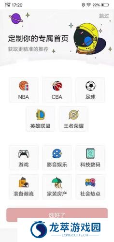 1、打开虎扑评分app,首次进入软件的用户可以选择自己感兴趣的社区,当然也可以选择跳过。