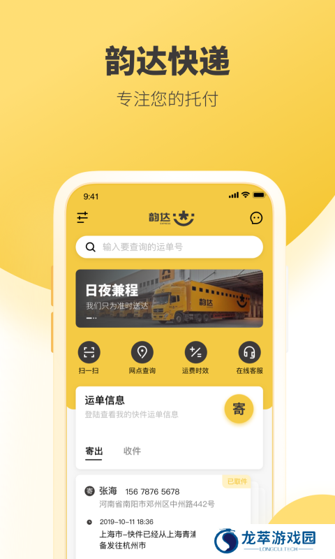 韵达快运是韵达旗下的快递配送软件,线上填写运单信息韵达快递员即刻上门取件,寄快递、收快递无需出门,发包裹更便捷。与附近的韵达快递网点同步更新,通过GPS定位直接寻找包裹所在的韵达网点,线下取件更方便。快递数据实时更新,输入快递单号或手机号就可以查看包裹的当前位置,查看包裹运输、转运过程,了解包裹现在正滞留在哪个快递中转站,向韵达客服反馈,让包裹能够顺利抵达。