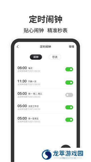 2、将其作为手机闹钟使用,一键操作就可以添加多个闹钟,能够帮助用户规划时间。