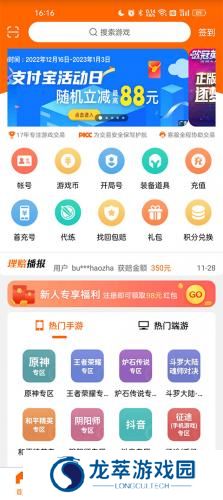 1、一个以游戏资源、账号为主的交易平台,可以在这购买金币、装备、材料等。