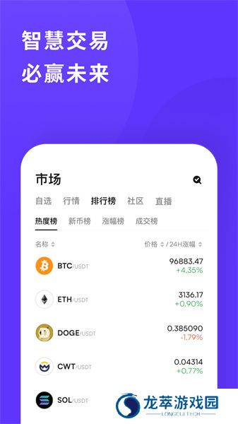 币赢交易所是一个加密货币交易平台,提供数字资产的买卖、交易、存储和管理等服务。允许投资者们进行加密货币交换各种数字资产,如比特币、以太坊、莱特币等。币赢交易所提供了用户友好的界面、高效的交易引擎、严格的安全措施,以及丰富的交易工具和功能,让所有投资者都可以轻松实现高效的区块链产品交易。