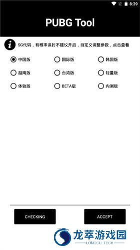 2、进入PUBGTool主界面,选择相对于的PUBG版本(中国版所对应的是和平精英)。
