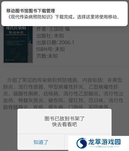 2、例如这本现代传染病预防知识,点击下载,图书就会自动放入书架了,我们点击去书架看看吧。