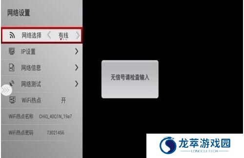 2、选择有线连接或者是WiFi热点连接,将网线插入电视机即可进行有线连接。