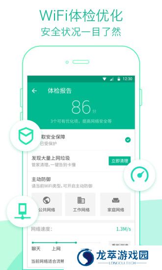 腾讯wifi管家安装包中连接到网络后就可以直接的进行一站式管理,功能方面也是全部都有的,测网速、防蹭网、修改网络、管理网络等等都是可行的,帮助你全面的去掌握WiFi的真实情况。