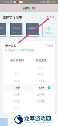 3、定制背单词计划,包括完成日期、完成天数、每天背单词数等,养成良好的英语学习习惯。
