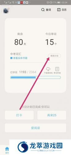 1、打开百词斩app,在首页点击修改计划。