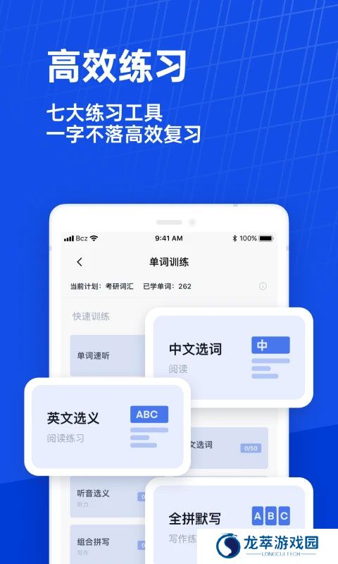 3、设置词汇量测试板块,听力、阅读、写作词汇分开测,精确了解考生自己的单词储备量。