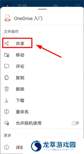 3、将需要共享的文件存储至app内后,即可进行共享,步骤如下:例如将:OneDrive入门进行共享,点击该文件的右边的三点。