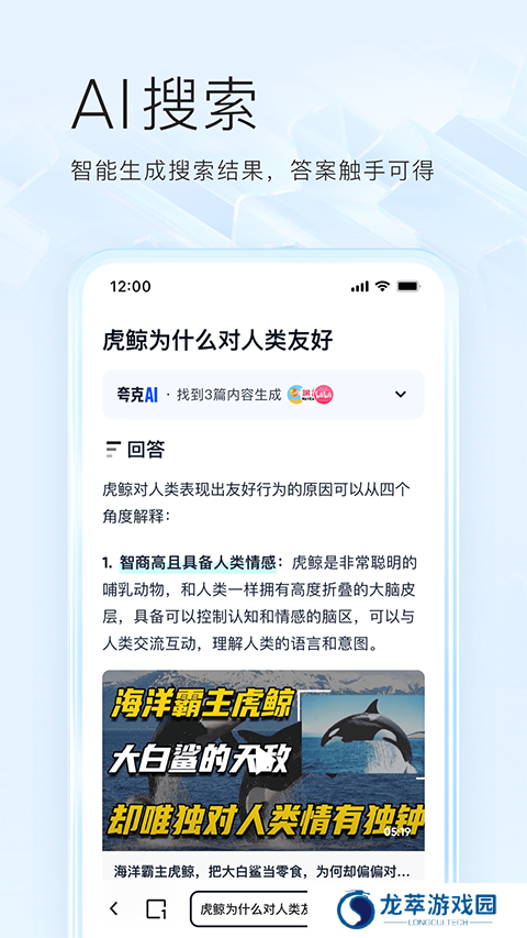 夸克浏览器安卓版是一款打造智能搜索引擎的手机浏览器,加入到平台后就可以帮助用户更快速、更方便地进行搜索。同时该浏览器当中更是采用了双核技术,确保了在使用过程中能够大幅的提升网络稳定性,并具备出色的速度和安全性。夸克浏览器安卓版的稳定性更高,操作简单易用。无论是搜索信息还是进行其他操作,都能流畅自如。使用夸克浏览器安卓版,您可以轻松畅游互联网,享受高效的浏览体验。