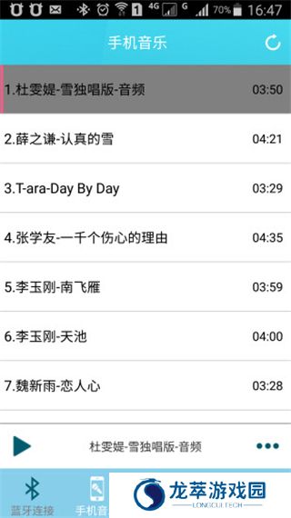 1、在这里能够看到设备中的各种音乐内容,快速播放不同的音乐。