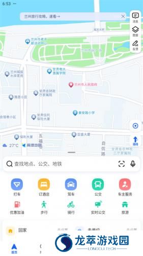 2、进入软件首页后可以查看自己的位置所在,点击搜索框可以搜索想要前往的地点,快速查询路线。