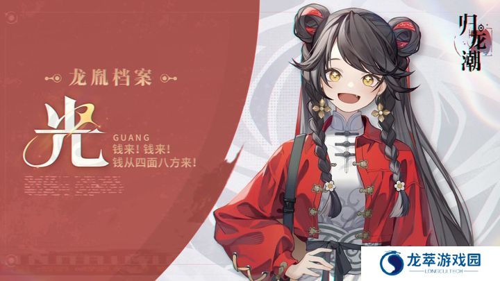 【光】:金属性虬龙阶角色,御三家之一,技能本身偏向于补充队伍伤害,高胤痕可以给队友提供金属性伤害加成,自身的专属龙咒可以增加下一个切出来的角色的暴击率,强度不是很高,并且金属性的输出【瑶瑶】强度也不是爆炸,培养的优先级都不高。