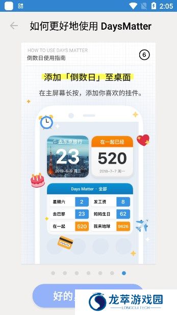 3、添加桌面挂件功能,将倒计时挂件放置在桌面上,查看重要日期的倒计时情况。